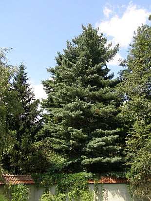 Pinus Strobus is a beautiful landscape pine widely used throughout much of North America. It is a truly magnificent tree attaining a height of 80 feet at maturity with a diameter of two to three feet. It carries long, soft bluish green needles with large brown cones. Cones are 4-8 inches in length and are rather thin and never have prickles. Widely used as a screen or windbreak.