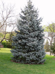 Gorgeous, brilliant, stately. The Picea Pungens, is a pyramidal shaped evergreen with steel blue foliage. It prefers heavier soils, full sun, and clean cultivation. Picea Pungens will reach a height of six feet in eight years on a good site. The Picea Pungens is probably the most drought tolerant of all spruce. It is widely used in windbreaks or as an ornamental yard tree.